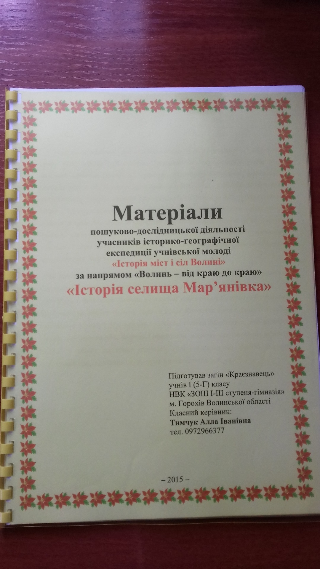 - 2014 - 2015 н.р. "Історія селища Мар'янівка "